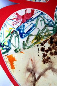 A Herzerl für's Herzerl, Nr. 2 Collage mit Jugendarbeiten, mexikanisches "Tierchen" 65 x 47 cm 245 € |