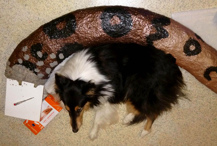 cuddling with my Giant Jaguars discarded tail which is being worked on