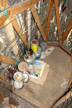 Farbtöpfe für die Bemalung der Korpus. Die Materialien und verwendeten Kunststoffteile sollen sichtbar sein.