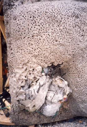 Ich stoße gefühlt eine Million Löcher in die graue Masse, damit die Feuchtigkeit entweichen kann.