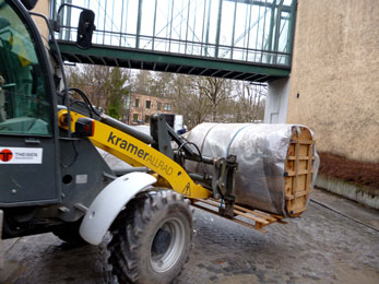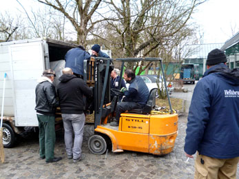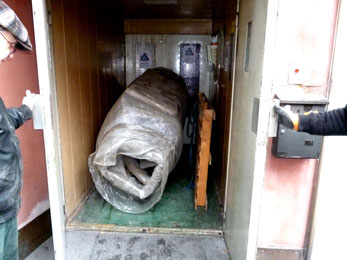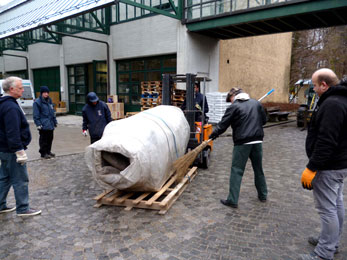 (22) Transport des Riesenjaguar-Körpers in meine Ausstellungsräume