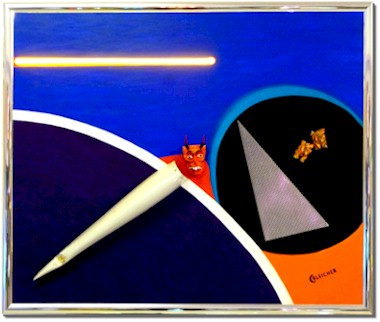 ![]() Flight to Heaven Original Flugzeug-Teil, gelbes Neon auf Acryl, Holzmaske, Holzfrösche, Lochblech 97 x 116 cm | ||